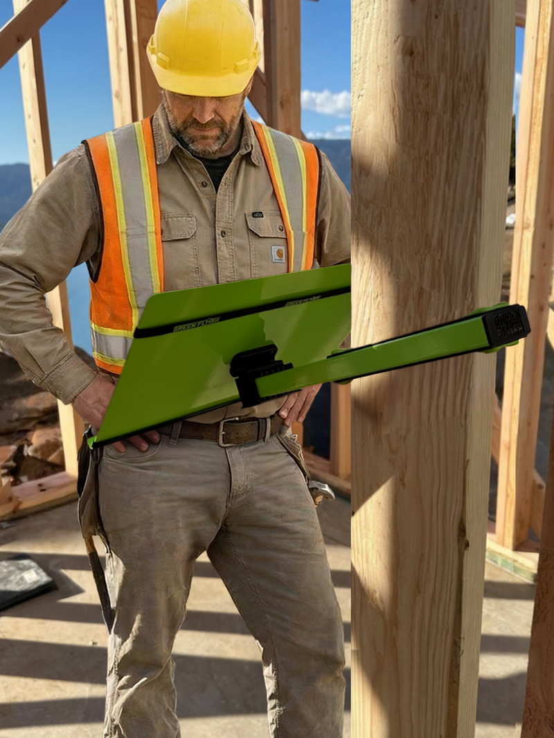 The GREEN FLASH® mobile jobsite desk deploys instantly onto any standard 2x4 or 2x6 stud. No tools or fasteners needed. A smooth, stable, sturdy work surface right where you need it, when you need it.